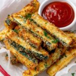 These Baked Zucchini Fries are a delicious and healthier alternative to traditional fries, featuring crispy panko and Parmesan coating baked to golden perfection. Perfect as a snack or side dish, they're flavorful and easy to prepare.