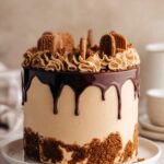 This Biscoff Cake features moist, fluffy layers infused with crushed Biscoff cookies and a whipped cookie butter cream cheese frosting. It’s topped with a luscious Biscoff drip and extra cookies, delivering a rich and indulgent flavor perfect for any dessert lover.