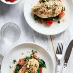This Cheesy Pesto Spinach Stuffed Chicken Breasts recipe features tender chicken breasts filled with a flavorful mixture of pesto, mozzarella cheese, fresh tomatoes, and spinach. Baked to perfection and optionally topped with garlic or herb butter, this dish is a healthy, low-carb, and delicious main course perfect for a quick weeknight dinner.