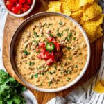 This Rotel Cheese Dip is a creamy, flavorful, and zesty appetizer perfect for any gathering. Made with lean ground beef, a blend of spices, Rotel tomatoes and chilies, salsa verde, and a combination of cream cheese and cheddar, it offers a rich and melty texture without using processed cheese. Serve warm with tortilla chips and garnish with diced tomatoes, cilantro, and hot sauce to taste for an irresistible party favorite.