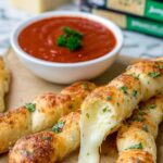 These Cheesy Stuffed Breadsticks are golden brown, buttery, and filled with melted Monterey Jack cheese. Perfect as an appetizer or snack, they are best served hot with marinara sauce for dipping. With a crispy exterior and gooey cheese inside, they bring ultimate comfort and flavor to any occasion.