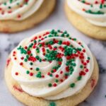 Enjoy festive flavors with these delicious Christmas Cake Batter Cookies! This copycat recipe captures the magic of holiday treats with a soft, buttery cookie base and rich, creamy frosting, all topped with colorful sprinkles for a delightful crunch. Perfect for holiday celebrations or gifting, these cookies bring joy to every bite.