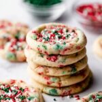 These Drop Style Christmas Sugar Cookies are soft, chewy, and loaded with colorful sprinkles. Made with just 8 simple ingredients, they require no rolling or cookie cutters, making them perfect for a festive holiday treat. Chilling the dough enhances flavor and texture, resulting in delightful cookies with a tender center and lightly browned edges.
