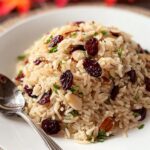 A flavorful and easy-to-make rice pilaf featuring toasted slivered almonds and sweet dried cranberries, perfect as a holiday side dish or a simple weekday accompaniment.