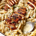 - Combine pasta and chicken: Stir the cooked pasta into the sauce. Slice or chop the rested chicken and add on top or mix into the pasta. Add reserved pasta water a little at a time if needed to adjust sauce consistency. Taste and season with additional salt and pepper as desired.