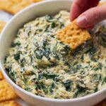 - Serve: Serve the spinach dip in a bowl alongside crackers, baguette slices, chips, carrot sticks, celery sticks, or bell peppers. Optionally, present the dip in a hollowed-out bread bowl for a festive touch.
