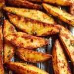 - Arrange and bake: Spread the coated potato wedges in a single layer on the prepared baking sheet to ensure even cooking. Bake in the preheated oven for about 35 minutes, flipping the wedges once halfway through baking to promote crispy edges on all sides.