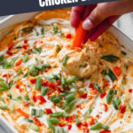 - Serve: Serve the dip directly from the slow cooker or transfer it to a serving dish. Garnish with green onion and drizzle with hot sauce and/or ranch if desired. Accompany with celery sticks, carrot sticks, mini bell peppers, and tortilla chips.