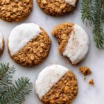These Gingerbread Latte Cookies combine the nostalgic chewiness of classic oatmeal cookies with festive gingerbread spices and a creamy espresso-speckled white chocolate dip. Perfectly soft, lightly spiced, and topped with a sprinkle of cinnamon and nutmeg, they deliver a cozy holiday treat reminiscent of your favorite gingerbread latte in cookie form.