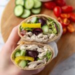Greek Turkey Wraps with Hummus combine zesty Greek salad flavors with savory deli turkey wrapped in a soft tortilla, making a quick and delicious lunch option packed with fresh vegetables, creamy feta, and a tangy Greek vinaigrette.