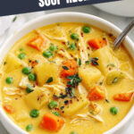 A wholesome and comforting Healthy Chicken Pot Pie Soup that is dairy-free and Whole30 compliant. Packed with tender chicken, fresh vegetables, and fragrant herbs, this creamy soup uses coconut or almond milk for richness without dairy. It's perfect for a nourishing meal on a chilly day.