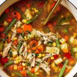This comforting Vegetable Chicken Soup is a flavorful and nutritious dish featuring tender chicken thighs, a medley of fresh vegetables, and a richly seasoned broth. Perfect for meal prep or a wholesome family dinner, it combines hearty Yukon gold potatoes, green beans, carrots, celery, and corn with the vibrant taste of fire-roasted tomatoes and herbs. Easy to make on the stovetop with options to use fresh chicken thighs or rotisserie chicken, this soup is a satisfying and flexible way to enjoy a warming home-cooked meal.
