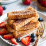 Homemade French Toast Sticks are a delicious and fun breakfast treat made with thick Texas toast soaked in a rich egg mixture, cooked to golden perfection, and coated in a crunchy cinnamon sugar blend. Served warm with maple syrup, they are soft inside with a sweet, crispy exterior perfect for all ages.