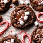 Delight in these soft, fudgy Hot Chocolate Cookies featuring a marshmallow swirl and a molten peppermint chocolate truffle center. Topped with crushed candy canes and mini marshmallows, these festive cookies come together in one bowl without chill time, perfect for cozy winter and holiday baking.