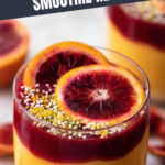 Rinse out your blender quickly, then blend together the chopped raw beet, frozen raspberries, peeled citrus segments (cara cara orange or blood orange), and pomegranate juice. Blend until you get a creamy, smooth texture. If it feels thick, add a little more pomegranate juice to loosen it up. Pour this ruby-colored mixture slowly over the mango base. Gently swirl with a spoon to create pretty layers without completely mixing them—this is such a fun, beautiful finishing touch!