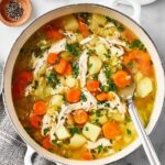 This easy turkey soup is a comforting and hearty way to use leftover turkey. Packed with vegetables like carrots, celery, and potatoes, simmered in low-sodium chicken broth, and seasoned with fresh herbs, this soup comes together quickly and makes for a perfect wholesome meal.