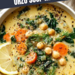 Lemony Greek Chickpea Soup is a vibrant, protein-packed vegetarian soup inspired by Avgolemono Soup. It features chickpeas, orzo, fresh vegetables, and kale in a fragrant, silky lemon-infused broth, perfect for a nourishing meal ready in just over 30 minutes.