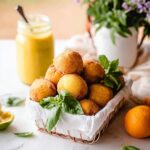 These Italian Lemon Cookies are soft, olive oil-based treats bursting with zesty lemon flavor and a tangy lemon curd filling. Dipped in a fragrant lemon basil syrup and coated with sugar, these cookies are shaped like lemons and decorated with fresh basil leaves for a delightful, visually stunning dessert perfect for any celebration.
