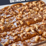 Pour the oatmeal batter into your prepared pan and bake for about 35 minutes. The center might jiggle a bit when you gently shake the pan, but that's normal. It will firm up nicely as it cools, so resist the urge to overbake and dry it out.