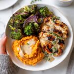 This flavorful sheet pan chicken thighs recipe pairs tender, seasoned chicken with roasted broccoli and red onion, all cooked together for an easy and delicious weeknight dinner. The meal is finished with a tangy honey-mustard sauce, making it a perfect balance of smoky, sweet, and savory flavors with minimal cleanup.