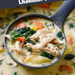 This creamy and comforting White Lasagna Soup with Chicken combines tender chicken breasts, sautéed vegetables, cream cheese, and Parmesan for a delicious twist on traditional lasagna. Featuring baby spinach and broken lasagna noodles, this cozy soup delivers all the classic flavors of white lasagna in a warm, hearty bowl perfect for any season.