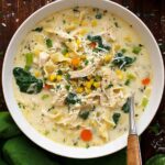 This creamy and comforting White Lasagna Soup with Chicken combines tender chicken breasts, sautéed vegetables, cream cheese, and Parmesan for a delicious twist on traditional lasagna. Featuring baby spinach and broken lasagna noodles, this cozy soup delivers all the classic flavors of white lasagna in a warm, hearty bowl perfect for any season.